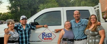 Perry Roofing is owned and operated by the Perry family. Carmon, the daughter of owners Mr. & Mrs. Perry, runs the daily tasks in the office and manages the Perry Team. Mr. Perry, Santos and Jessie, Carmon's husband, run the field operations and quality control. Mrs. Perry works the books, accounting, and provides much needed morale of the family.
