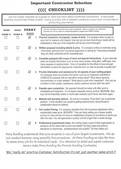 This information is intended to help you in selecting a roofing contractor who will install your roof for a fair price, using quality materials, with as little inconvenience to you as possible. We want to be that contractor. We are a re-roofing company not a new construction company, therefore, we can offer you experience in dealing with customer care, occupied homes, and insurance claims. We also contract better roofing crews.